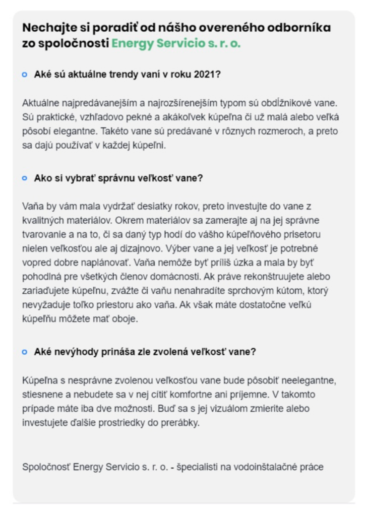 Naša inštalatérska firma Energy Servicio s.r.o. odporúča veľkosť a typ vane pre Wilio v článku:
